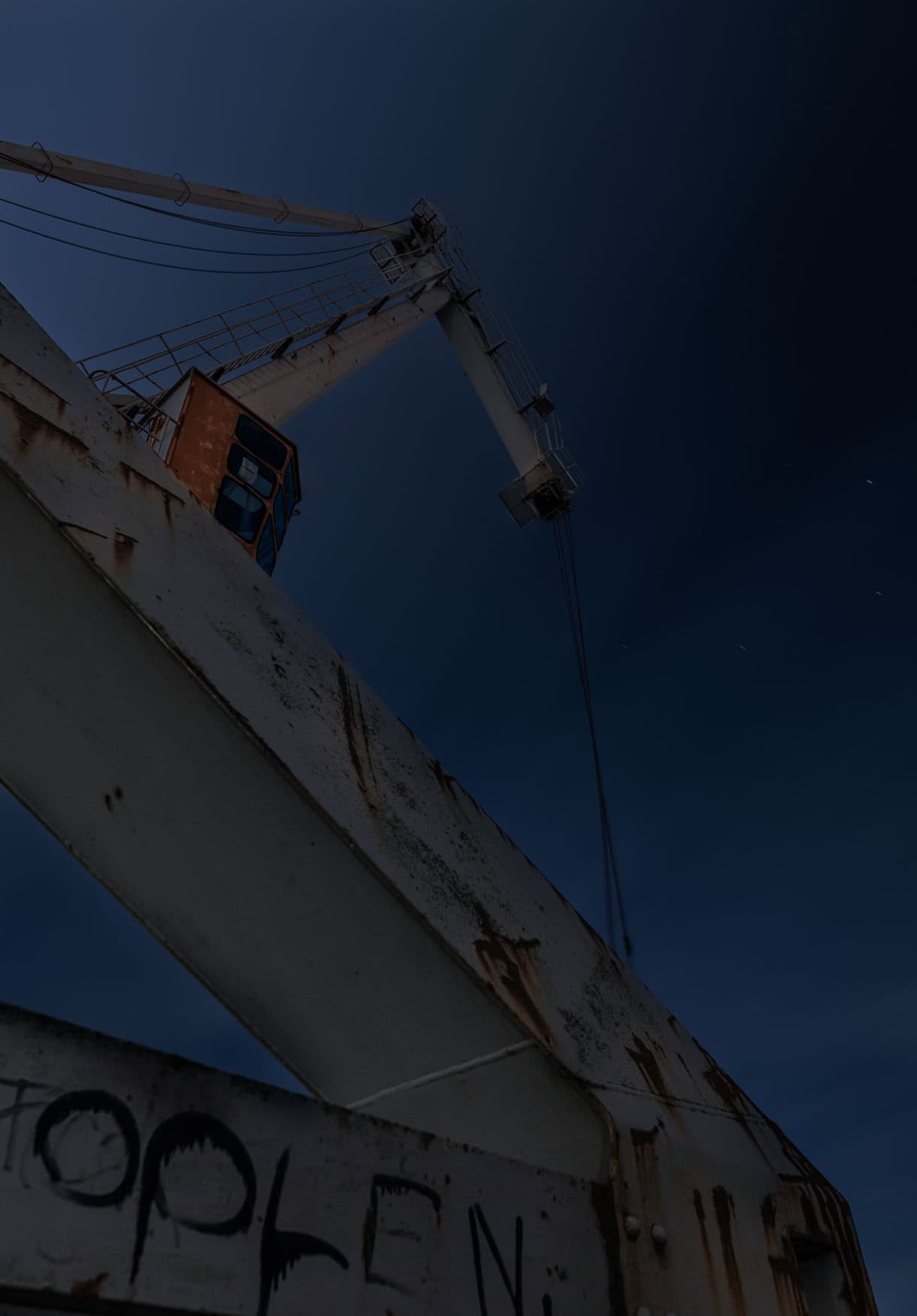 Stählerne Stille – Der Hafenkran bei Nacht im Düsseldorfer Industriehafen