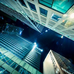 Frankfurt Hochhäuser von unten – Nachtperspektive