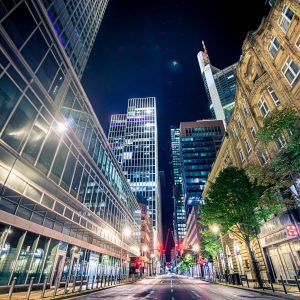 Frankfurt Bankenviertel bei Nacht – Straßenschlucht