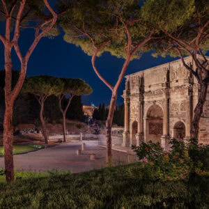 Konstantinsbogen, Rom – Nacht unter Schirmpinien