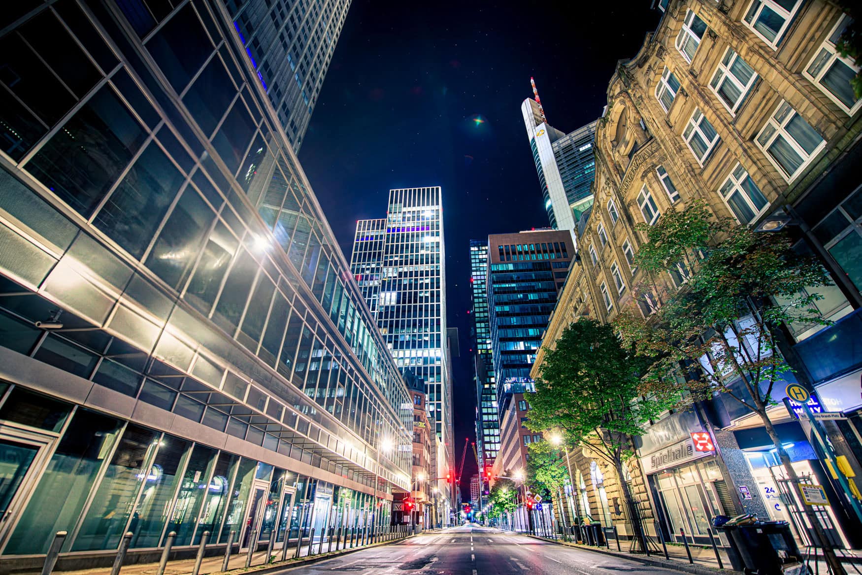 Frankfurt Bankenviertel bei Nacht – Straßenschlucht