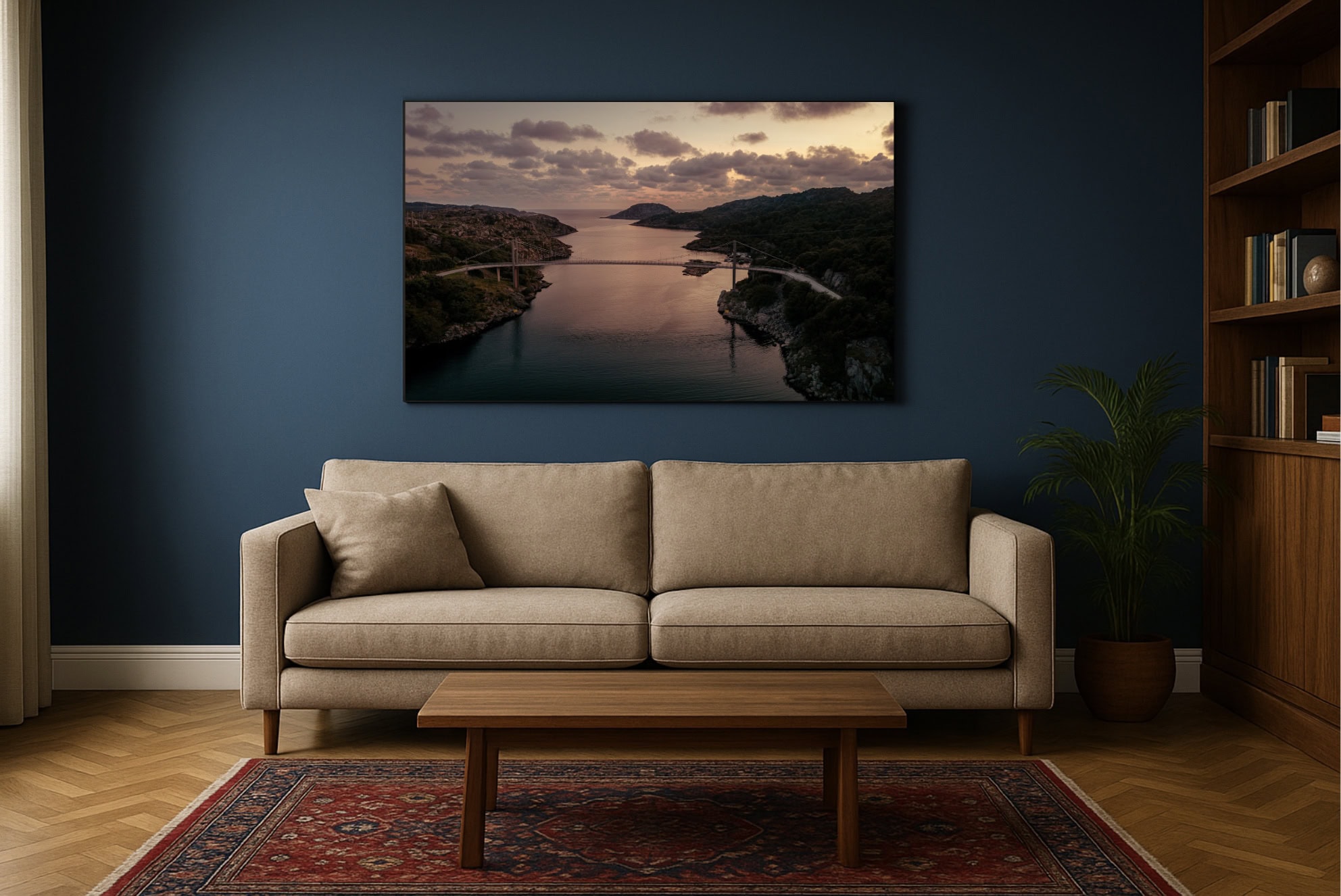 Gedruckt auf hochwertigem Canvas und auf einen stabilen Holzrahmen gespannt, entsteht ein fertiges Wandbild mit natürlicher Tiefe und ruhiger Präsenz – ganz ohne zusätzliche Rahmung.