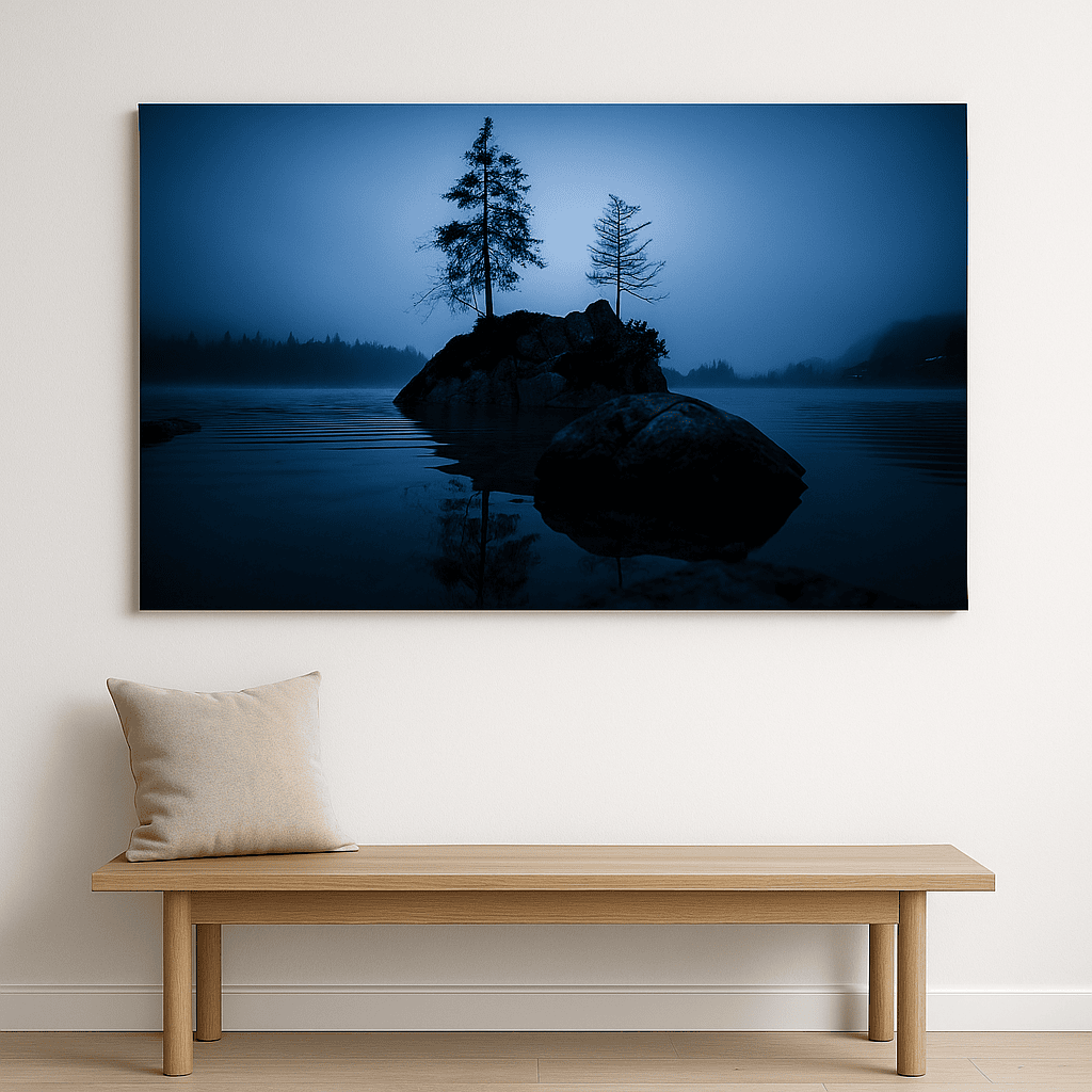 Gedruckt auf hochwertigem Canvas und auf einen stabilen Holzrahmen gespannt, entsteht ein fertiges Wandbild mit natürlicher Tiefe und ruhiger Präsenz – ganz ohne zusätzliche Rahmung.