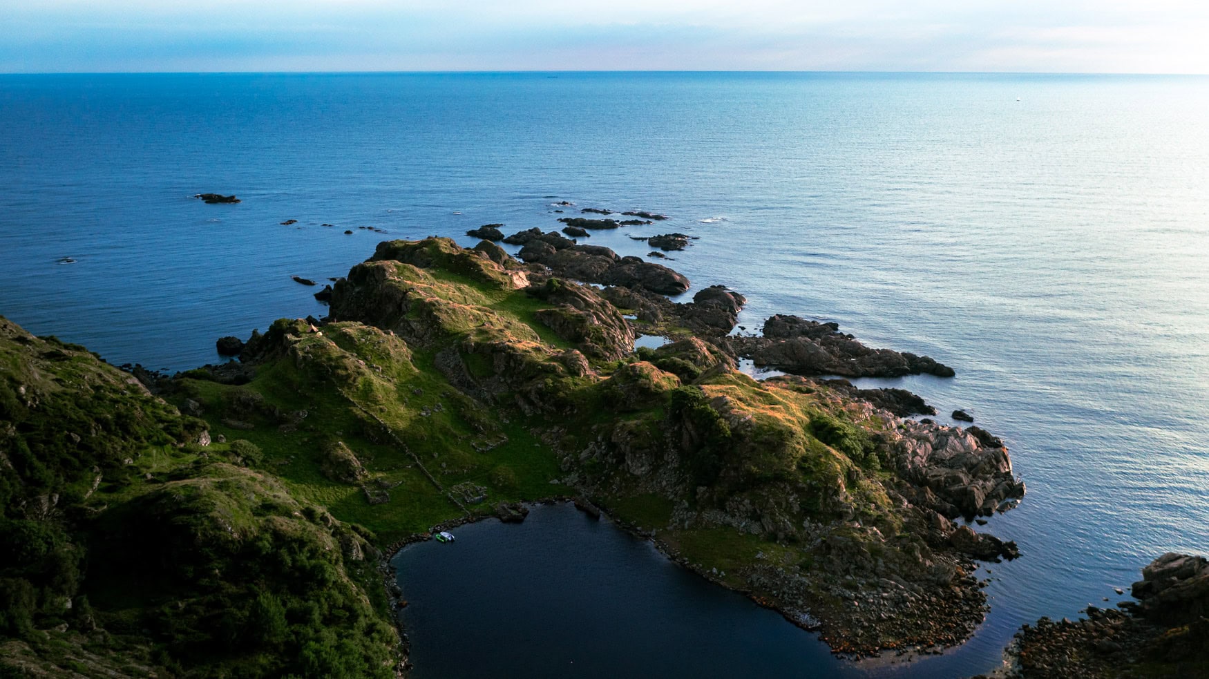 Im Sommer 2021 war ich mit der Drohne auf Hidra, einer kleinen Insel vor Flekkefjord in Agder. Statt an der Küste zu bleiben, folgte ich einem schmalen Pfad über Felsen und nasse Steine – dorthin, wo ich zuvor aus der Luft eine markante Klippe gesehen hatte. Oben startete ich die Drohne, und erst in der Höhe zeigte sich die eigentliche Magie des Tages: eine zerklüftete, grasbewachsene Inselzunge, umspült von der ruhigen Nordsee – ein Motiv, das mich an diese zeitlosen „Insel im Blau“-Momente von Krombacher Werbungen erinnert.