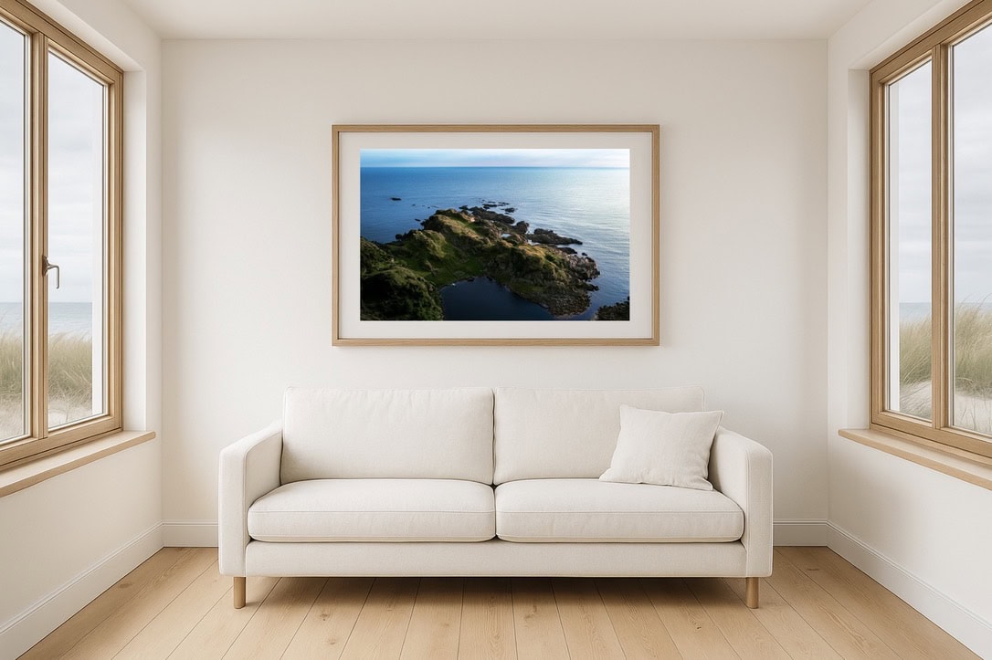Ich habe die Szene bewusst ruhig ausgearbeitet: weiche Übergänge im Wasser, natürliche Grüntöne im Fels, dezente Kontraste. So entsteht ein Bild, das weniger „laut“ ist, dafür lange trägt – ein Stück nordische Gelassenheit, eingefangen zwischen Meer, Fels und Himmel.