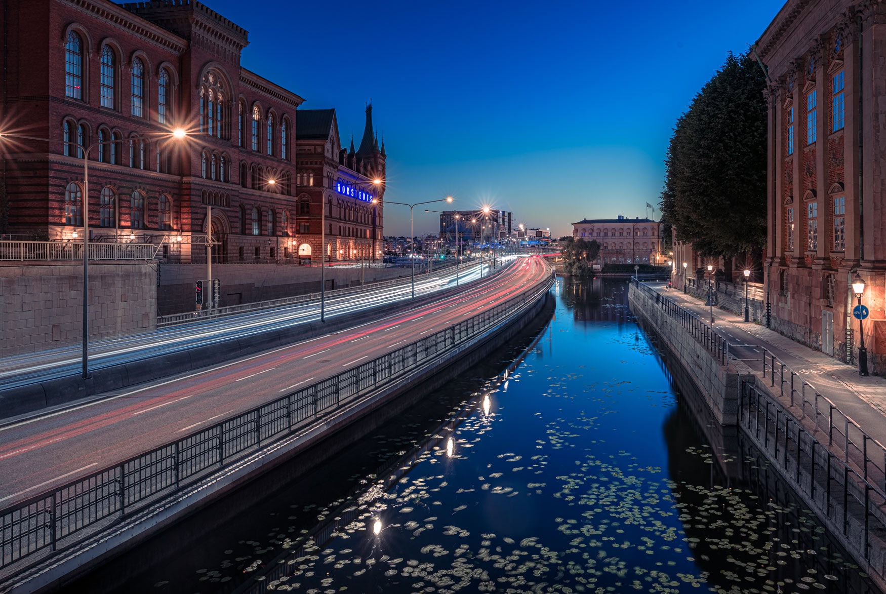 Stadshuset & Centralbron – Lighttrails über dem Kanal