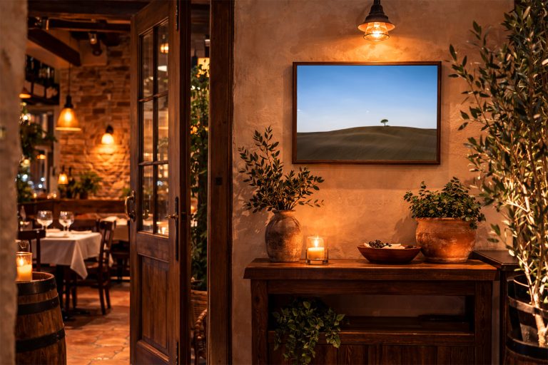 Besonders sinnvoll für große Gasträume, Hotels, Empfangsbereiche oder zentrale Blickwände.