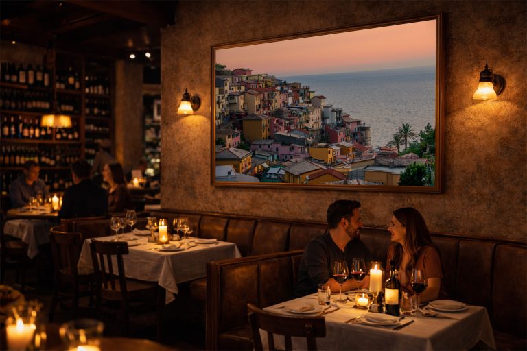 Nicht jedes Restaurant braucht sofort ein großes Galerieformat. Deshalb sind meine Wandbilder in klaren Preis- und Qualitätsstufen aufgebaut: Classic für den Einstieg, Fine Art für sichtbar mehr Tiefe und Masterprint für große Räume und starke Hauptwände.